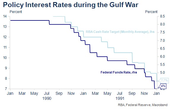 - The Gulf War saw the US Federal Reserve and RBA focusing on domestic economic fundamentals and continuing to ease as both economies entered recession, which the oil price accentuated but did not cause.